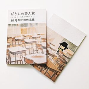 過去の入選者で、現在お手元に『ぼうしの詩人賞 10周年記念作品集』が届いていない場合は、下記フォームよりご連絡いただければ、記念冊子をお送りいたします。